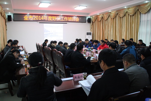 会议由市林业局党组成员、总工程师张惠琴主持。会议培训期间,一是认真学习和贯彻了全省野生动植物保护与自然保护区管理培训会议及全省湿地工作现场推进会议精神,重点学习了刘新池厅长、黄德华副厅长的重要讲话精神。二是省厅5位专家分别就自然保护区规范化建设与管理、野生动物调查任务及方法、野生动物疫源疫病监测防控工作内容及方法野生动植物保护有关法律法规规定、野生动植物行政许可程序及工作规范、湿地公园申报条件及程序、野生植物调查任务及方法等7个方面进行了较系统的讲解。三是安排部署了当前全市野保主要工作。最后,张惠琴强调,在当前全国上下深入贯彻党的十八届四中全会精神,全社会越来越关注野生动植物保护的新形势下,各地各单位,尤其是从事野生动植物保护的人员,一定要认清形势,提高认识,增强责任感和紧迫感;增强学习意识、法治意识和创新意识;按照国家、省会议精神和要求,采取有效措施,认真抓好当前野生动物保护宣传月、野生动物保护专项行动、疫源疫病监测防控、保护区的升级、湿地公园的申报和建设工作和十三五规划目标制订和项目编报及争取工作等各项工作。