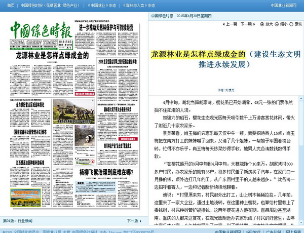 中国绿色时报:龙源林业是怎样点绿成金的(建设生态文明推进永续发展)