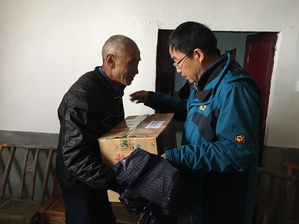 座谈会结束后,市林业局的党员们开展了送温暖活动。首先向三掌坪村村委会捐赠了办公桌椅、会议桌、饮水机、文件柜和沙发等办公物品46件。接着,各党员干部们不顾下雨,踏着泥泞小道,拎着为困难群众准备的衣物深入困难户家中,分头给他们送去棉衣棉被、鞋子等,共计150余件。在贫困户家中,党员们向他们了解了脱贫状况,为他们出谋划策,增加他们的信心,争取早日脱贫。贫困户感激不尽、眼泪婆娑,牵着党员干部的手说:感谢你们带来了惠民政策,给我们修了路、通了水、盖了房、种了树、养了猪,让我们的生活得到了很大改善。同时表示一定要更加自强不息,奋发图强,不辜负林业局广大干部职工为他们付出的心血,早日跟大家一起过上好日子。