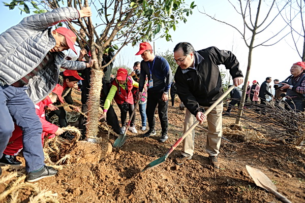 周霁一边植树,一边向市林业部门负责人询问我市林业生态建设情况,并与参加植树的干部群众、志愿者们就义务植树、环境保护等话题进行了交流。“这些树苗全部由来自五峰的湖北众森生态林业股份有限公司捐赠。”林业部门负责人介绍,本次义务植树活动是以企业认建形式,建设以乡土树种“五峰红花玉兰”为主的玉兰园,由此号召社会各界和企业积极参与到宜昌推进绿色发展的实践中来。周霁对认建企业表示感谢,嘱咐相关负责同志探索多种方式,不仅组织广大人民群众参与到植树中来,还要引导他们认识树、认养树,不断增强生态自觉。