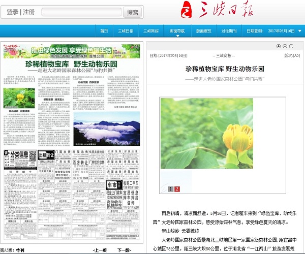 三峡商报:珍稀植物宝库 野生动物乐园
