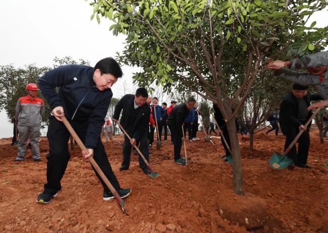 2月26日,市委书记周霁,市委副书记、市长张家胜参加今年春季义务植树活动时强调,要持之以恒保护修复长江生态环境,共护一江清水永续东流。