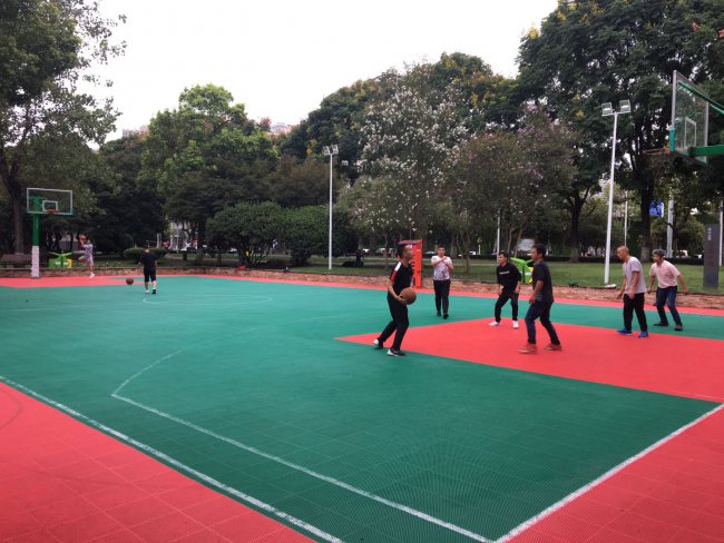(图为滨江公园标准化球场改造,吸引更多年轻市民到公园锻炼身体。拍摄者/陈格格)