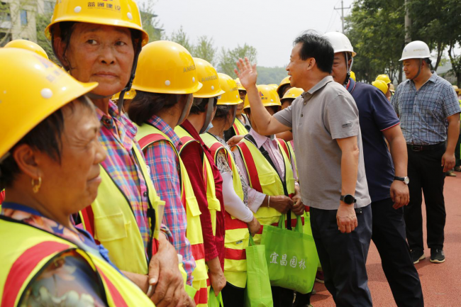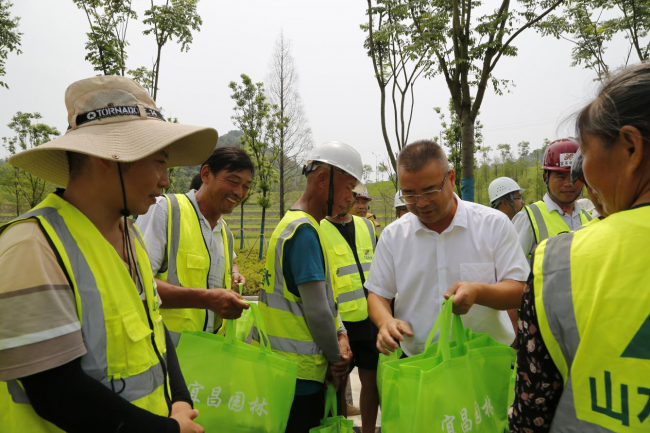 柯志强一行先后来到滨江公园绿道建设项目,长江岸线整治修复项目,三峡大道、点军大道绿化提升项目,卷桥河湿地生态保护和修复项目等施工和管养现场,向酷暑季节仍然坚守在建管一线的同志们表示衷心的感谢和真切的关怀。他强调要把工作开展好,也要把身体保护好,随后分批给1200余名辛勤的“城市园丁”们送上了防暑药品和西瓜、金银花露等降暑物品。