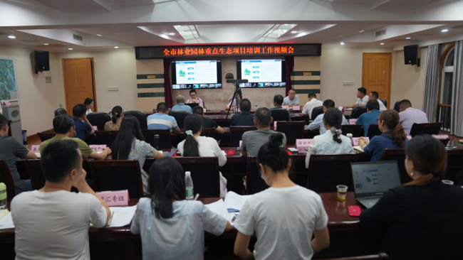 8月27日晚,市林业和园林局开展全市重点生态项目规划培训,局党组书记、局长柯志强及全体党组成员出席会议,各县市区林业主管部门以视频会议形式参加培训。
