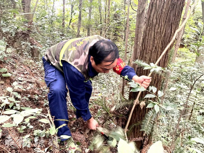 邓村是夷陵的西部山区,林地面积达36.85万亩,森林覆盖率93.41%。邓村林业管理站将现有林地划分成9个片区,分别由9名专职护林员管护,屈定军负责的则是较为偏远的高台头村和江坪村,守护着37000多亩林地。