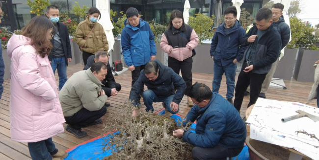3月6日下午,“师傅带徒弟”活动在滨江公园南榭盆景园内开讲啦!本次活动主题为盆栽换盆(换土)技术教学,由滨江公园管理处退休高级技师邓德忠老师现场指导。