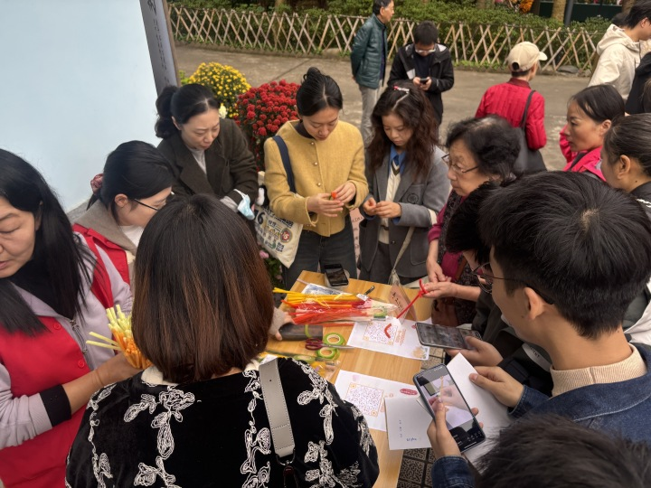 活动现场热闹非凡,满园造型各异的菊花与相机快门声交织成趣,互动游戏亮点接连刷屏;廉政灯谜区巧融菊品与廉意,小朋友猜中谜底后喜笑颜开;“投壶问菊”前排起长队,年轻人玩转传统雅趣,欢呼喝彩声此起彼伏;扭扭棒DIY专区里,市民亲手勾勒菊之形态,在指尖创意中体悟高洁品格;青年创意展区以千姿百态演绎“廉心”,圈粉无数,让廉政文化潮起来、活起来。