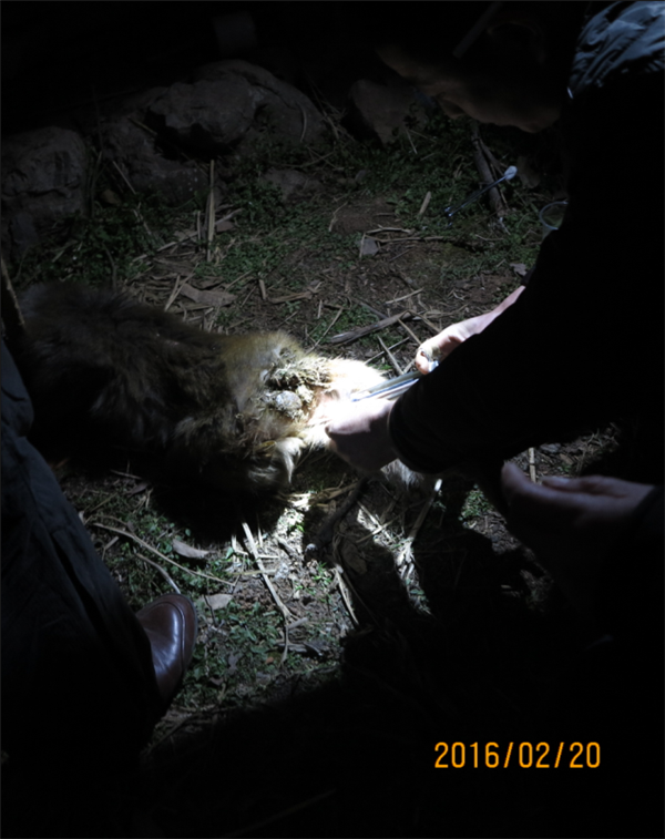 2月20日傍晚,远安县洋坪镇林业工作站森林防火值班人员接到了来自金竹园村支部书记罗发炳的电话,语气十分焦急的称村民张卫国在自家油菜田中发现一只背部受伤的猴子,急需救护。了解到这一情况后,远安县林业局立即派野保工作人员连夜前去查看,在当场进行初步救护后,鉴定属国家二级保护野生动物猕猴。