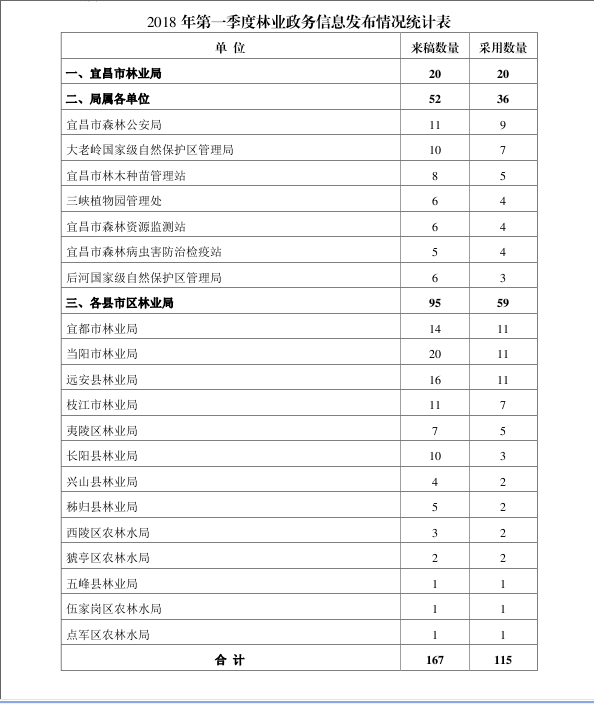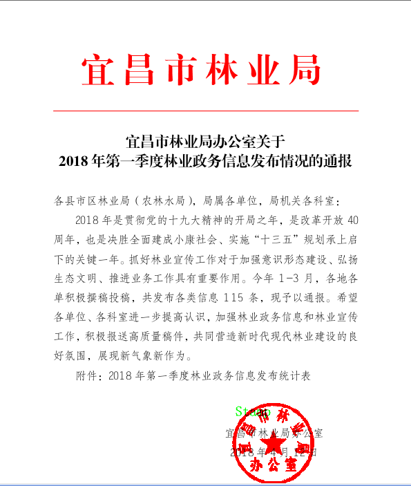 2018年第一季度林业政务信息发布情况的通报