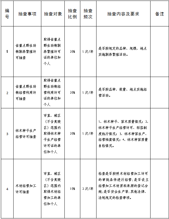 【公示公告】市林业局随机抽查事项清单